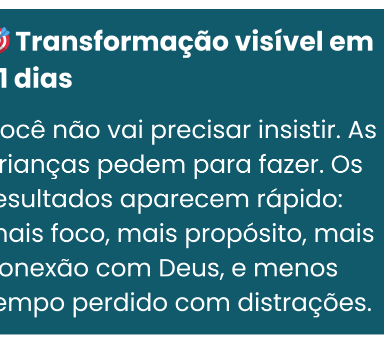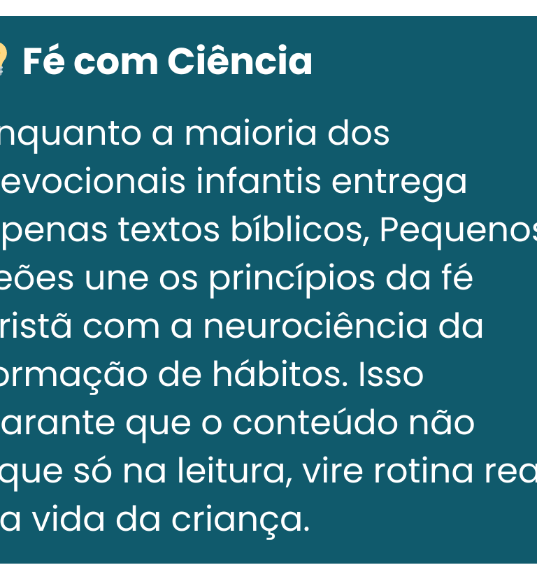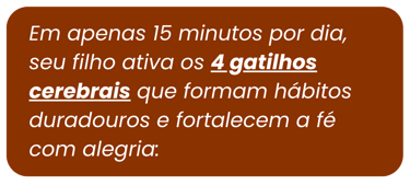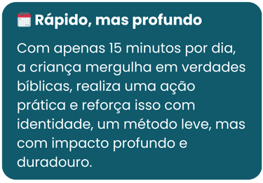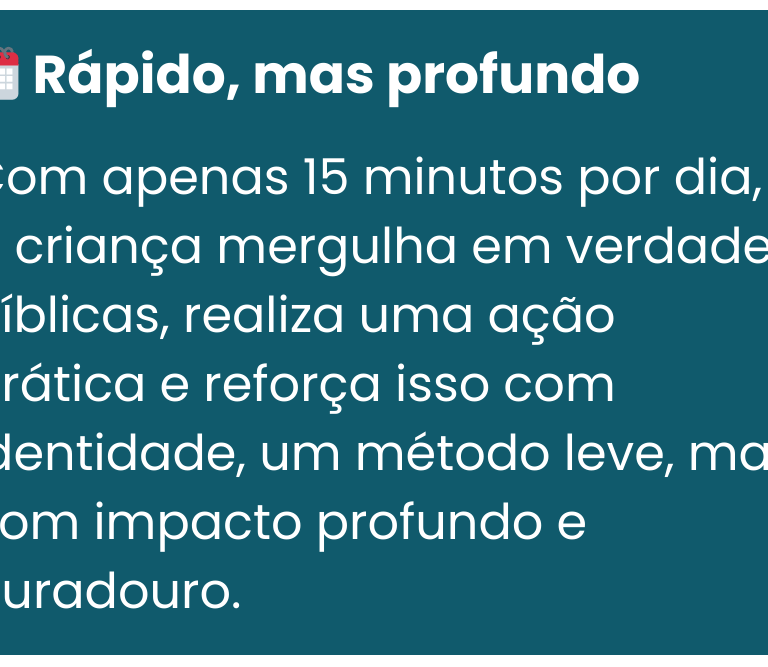 E se você pudesse guiar o coração do seu filho rumo à fé, ao propósito e aos bons hábitos, mesmo com a rotina corrida, usando um plano já pronto, lindo e criado exatamente para isso?
